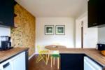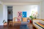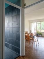 Original parquet flooring and linoleum tiles run throughout the apartment.