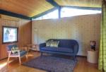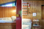 Caban Corgi is a woodland Scandinavian-style cabin designed by the Welsh architect Graham Brooks in the 1970s, characterized by an emphasis on natural timber and a seamless integration of indoor and outdoor spaces. It boasts a timber-clad interior and many original features including floor-to-ceiling glazing, which slides open onto the raised decked terrace. There is an open plan dining and living area, which is furnished with a modern take on 1970s retro charm, and a compact kitchen which is impressively well-equipped, ensuring that you have everything you need during your stay. There are two cosy bedrooms, providing comfortable sleeping arrangements for a small group or family, and a contemporary bathroom with an electric shower. Caban Corgi is located within the mature woodlands of Penlan Holiday Village, comprising around 80 cabins designed by Brooks, it provides an ideal escape from the hustle and bustle of urban life. Dogs are very welcome.