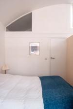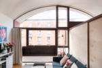 A sensitively renovated studio flat with separate bedroom in the Grade II* listed Crescent House on the Golden Lane Estate, designed by Chamberlin, Powell and Bon. The apartment is located on the top floor of the building and benefits from a distinctive barrel-vaulted ceiling, inspired by Le Corbusier’s Maisons Jaoul. The flat underwent a sympathetic restoration and upgrade by its architect-owner, TYPE studio, a few years ago, while retaining the mid-century aesthetic of the original architecture.
