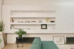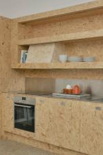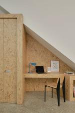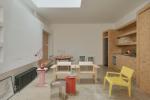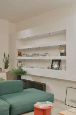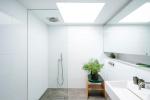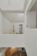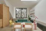 On the ground floor, a three-metre-high flexible space brings together living, dining, working and study areas. The fully equipped kitchen includes an oven, gas hob, washer/dryer and ample storage. Heating is provided by gas central radiators. Polished concrete floors run throughout, complemented by bespoke joinery and a minimal palette.