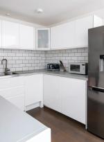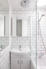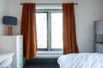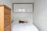 Up another half-flight are two bedrooms. The first bedroom has floor-to-ceiling windows that open onto a private terrace with far-reaching, 360-degree views. The second bedroom faces north, making it useful as a study, guest or child’s room. The apartment was refurbished a few years ago in a neutral palette with new radiators throughout, and offering flexibility for someone wishing to make design updates or put their own stamp on the space.