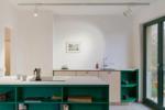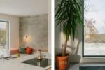 The interiors exude an industrial aesthetic with cool concrete elements, beautifully offset by warm, comfortable furnishings. Expansive windows flood the space with natural light and offer breathtaking views of the lush garden, seamlessly blending the indoors with the outdoors. Each apartment features private terraces and large panoramic windows offering scenic views extending beyond the garden to the fields of the neighboring Demeter farm. Both apartments are equipped with modern, fully fitted kitchens, including a dishwasher. All beds are king-size. Underfloor heating ensures a comfortable indoor climate. Upon request, a baby cot and high chair can be provided.