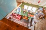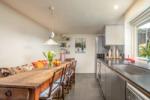 The living area includes underfloor heating beneath a new stone floor, a large fireplace, smart TV and glass doors opening onto the garden. The fully equipped kitchen centres around a wooden dining table, perfect for relaxed meals or celebratory feasts. A downstairs shower room also houses the washing machine. Upstairs is a king-size bedroom and, on the gallery, a sofa bed available on request (for adults only).