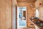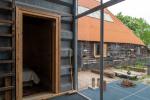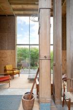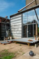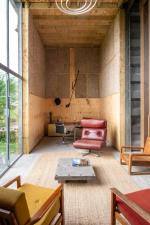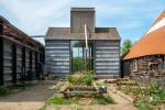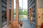 The Grainshed is a striking contemporary house in the Suffolk countryside, designed by Marcus Lee — also behind The Watershed on the Isle of Mull. Completed in 2024, it is an exemplar of adaptive reuse: a Douglas fir timber-framed home built within the steel frame of a former grain shed. Full-height glazing opens to views across fields from east to west, flooding the interiors with natural light throughout the day.