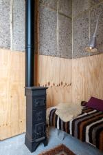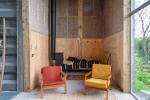 The property includes two double bedrooms and two bathrooms, with interiors that balance raw rural character and refined modern design. Outside, views stretch across a historic horse pond towards the tower of Lavenham church, anchoring the site within Suffolk’s layered landscape of history and agriculture.